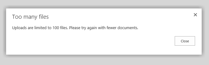 Esta acción tiene una limitación: Solo se pueden arrastrar al mismo tiempo 100 ficheros. Si pasamos de esa cifra al arrastrar nos saltará una ventana emergente indicándonos que hemos sobrepasado dicho límite.